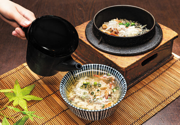 期間限定《夏の特別ランチ》は旬の魚やお野菜、お造りを盛り込んだ籠盛り三種から始まり、炭火で焼いた串焼きや炊き立ての選べる釜めし、最後のデザートとコーヒーまで、季節の味をいろいろと楽しめます。その他、ランチは1,100円からご用意しております。釜めしは夏季限定で冷やし茶漬け風でもお召し上がりいただけます。